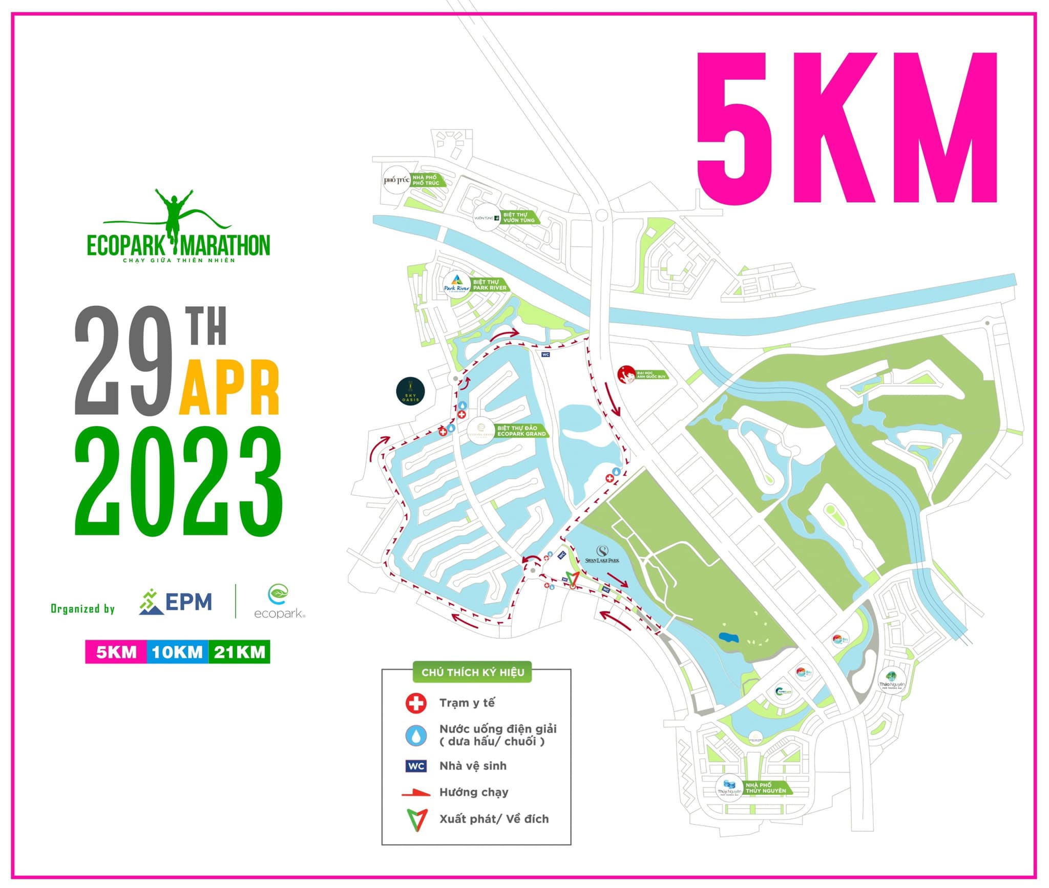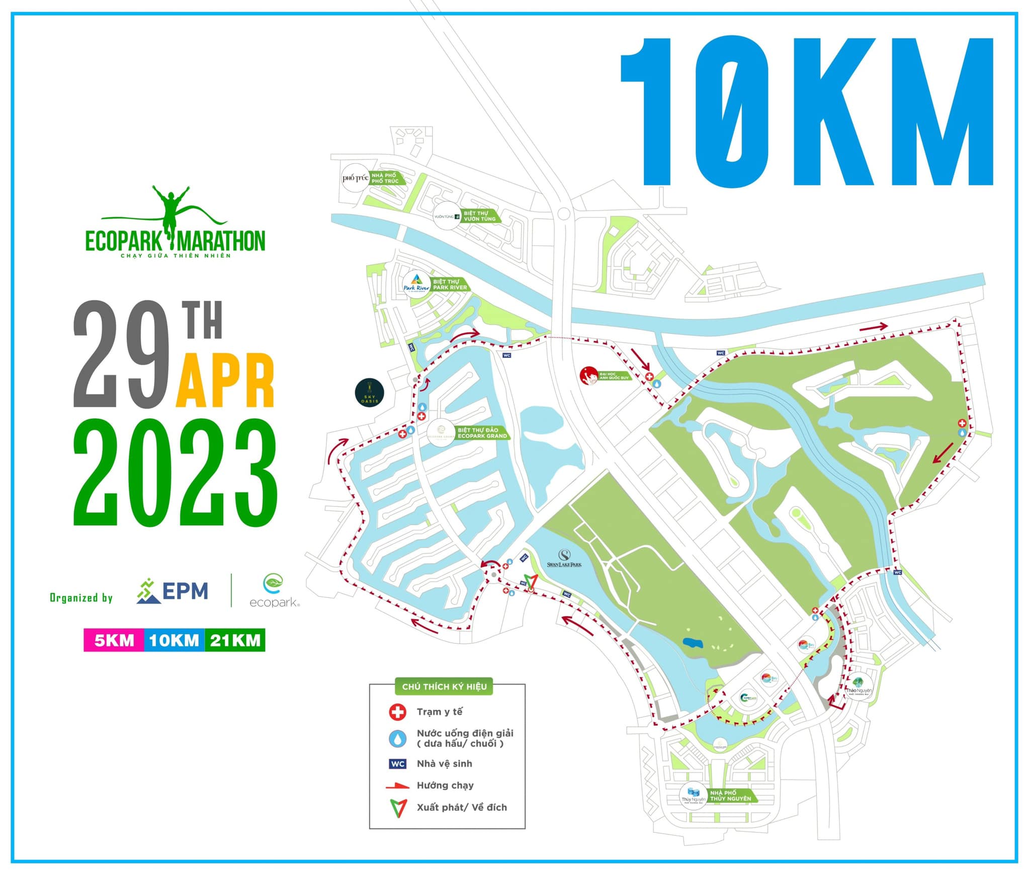 Ban tổ chức EPM23 xin công bố Route chính thức các cự ly 5km, 10km, 21km với những chi tiết như sau: