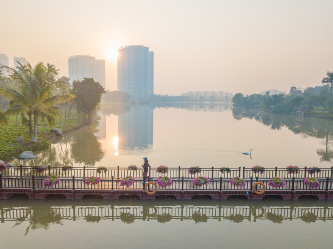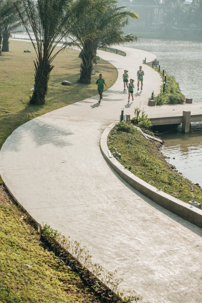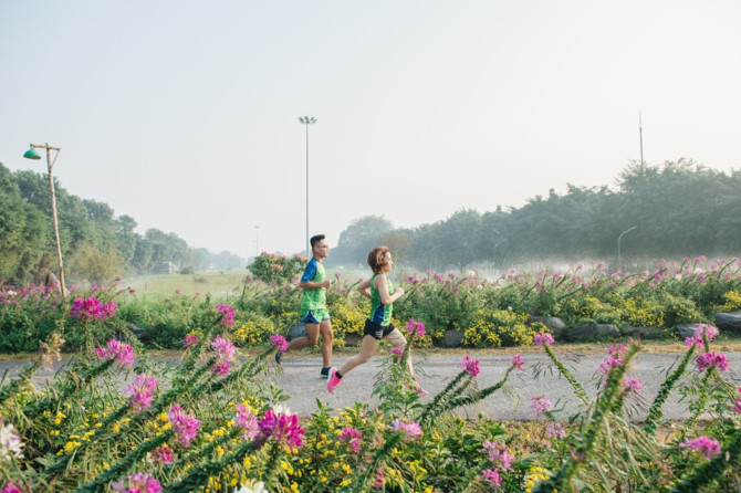Đến Ecopark những buổi sáng sớm khi trời còn mờ sương hay lúc chiều muộn nắng phủ vàng như rót mật, bạn sẽ dễ dàng bắt gặp những cư dân Thành phố Xanh đang tập chạy thể dục nơi đây. Cũng dễ hiểu thôi khi toàn bộ khung cảnh của Ecopark cứ như sinh ra chỉ để dành riêng cho việc chạy bộ.