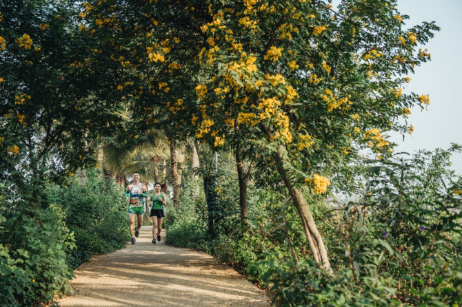Người chạy có thể vừa lướt qua khu chợ đông vui tấp nập rồi lại thấy mình lọt vào khung cảnh vắng lặng chỉ còn đại ngàn cây xanh và những sắc hoa rực rỡ. Lướt quá những dãy nhà cao tầng hiện đại rồi lại thấy mình dừng chân trên dòng sông Bắc Hưng Hải. Không khói bụi tàu xe, không dòng người chen chúc, chỉ là bạn, thiên nhiên và đôi giày chạy nhịp bước theo bản nhạc từ chiếc headphone.